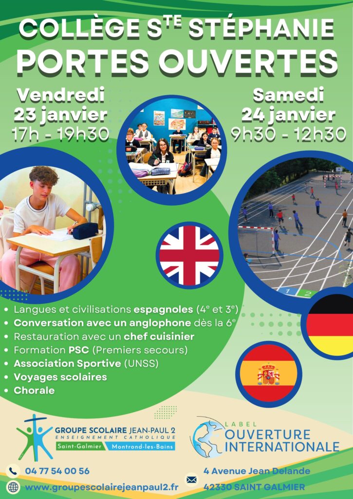 À Montrond-les-Bains, l’histoire est plus récente. Depuis une quinzaine d’années, nous y accueillons des élèves de la 6ᵉ à la 3ᵉ, puis de la seconde à la terminale, au collège et lycée général Saint Pierre. Un magnifique bâtiment, moderne et bien équipé, qui offre un cadre idéal pour grandir et se préparer à l’avenir et aux études supérieures.